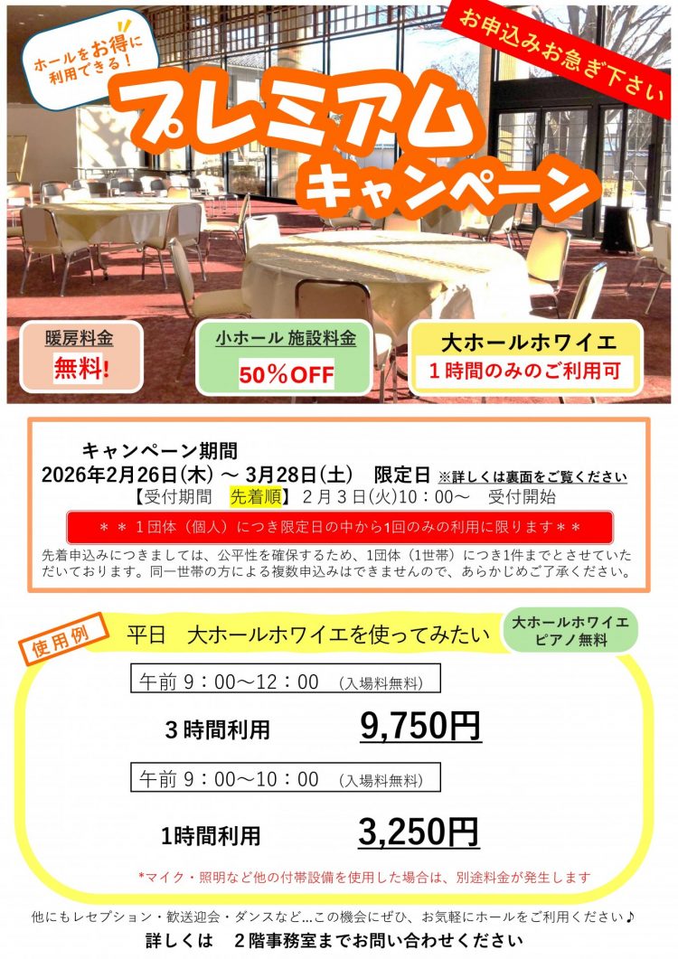 予約受付中プレミアムキャンペーン 第2弾 申込受付中 ご希望の方は窓口へお声がけください!!