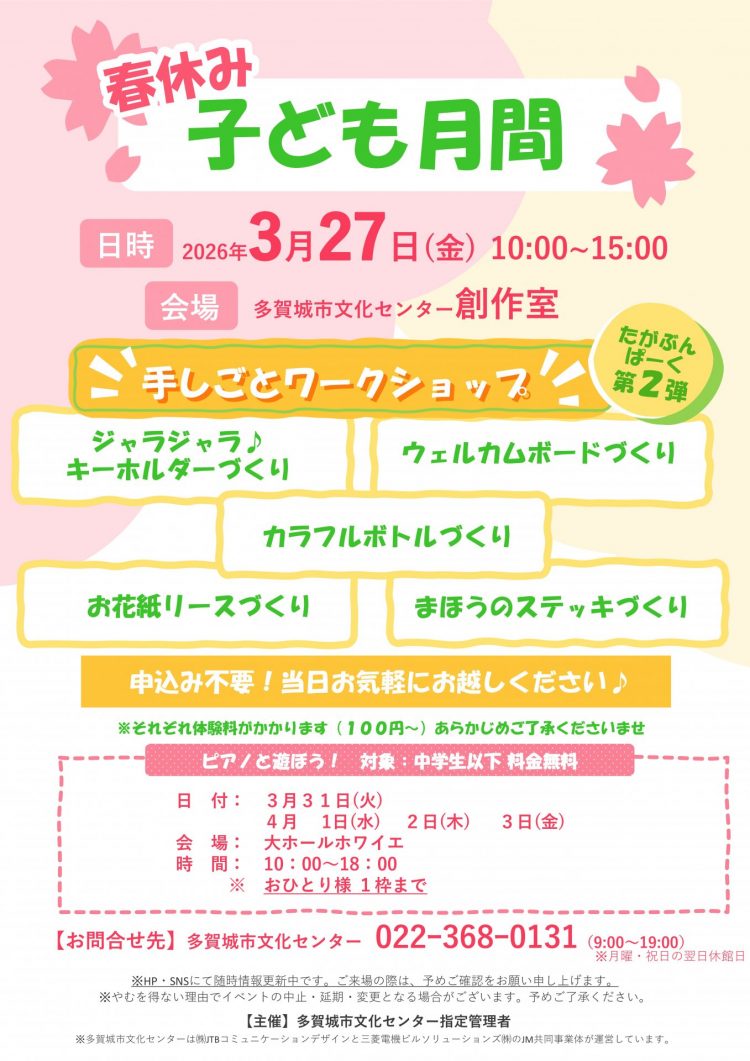 たがぶんぱーく第2弾 ”春休み子ども月間” 申込不要!当日直接お越しください!体験料金は別途かかります!